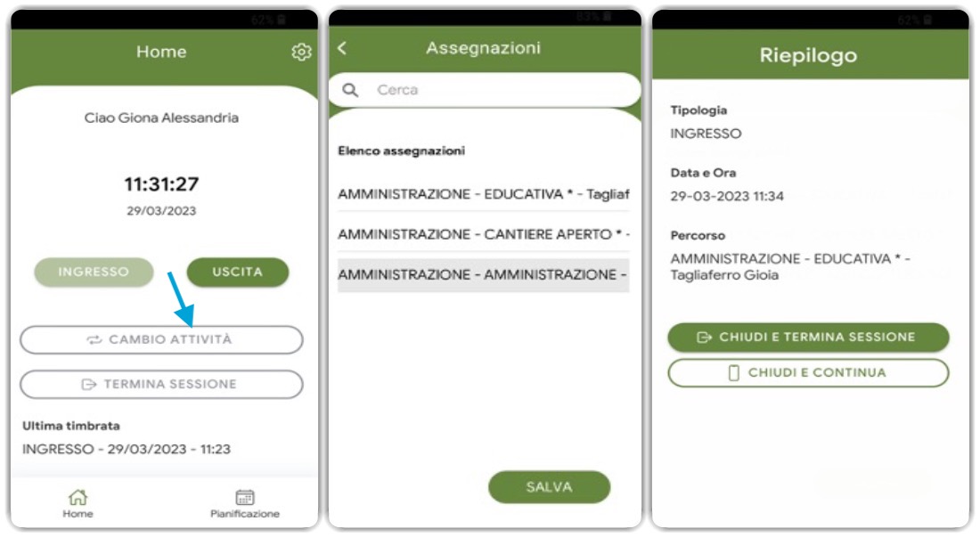 - Al termine seleziona cambio attività e scegli la nuova attività su cui stai per iniziare.