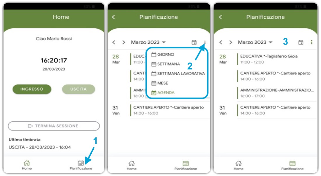 - Nella Terza immagine puoi selezionare l’attività e modificare l’orario.