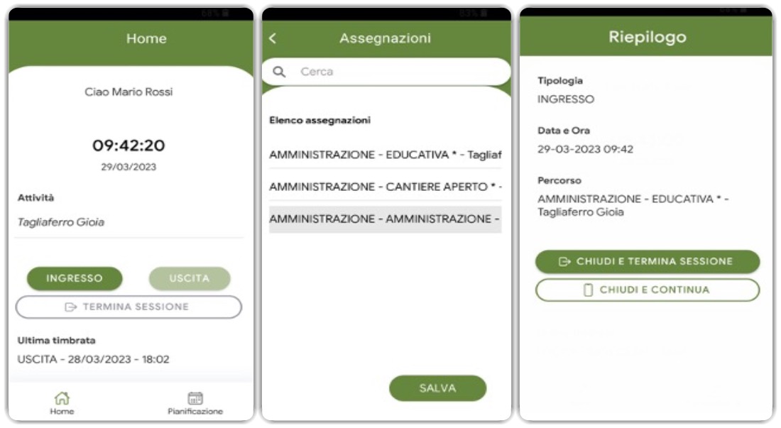 - Timbra l’ingresso e seleziona l’attività su cui devi lavorare.
