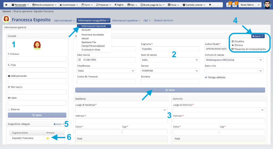 Anagrafica operatore > Informazioni Anagrafiche > Informazioni generali