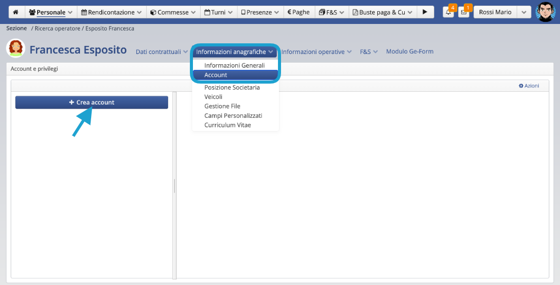 Clicca su Crea account per dare l’accesso all’operatore.
