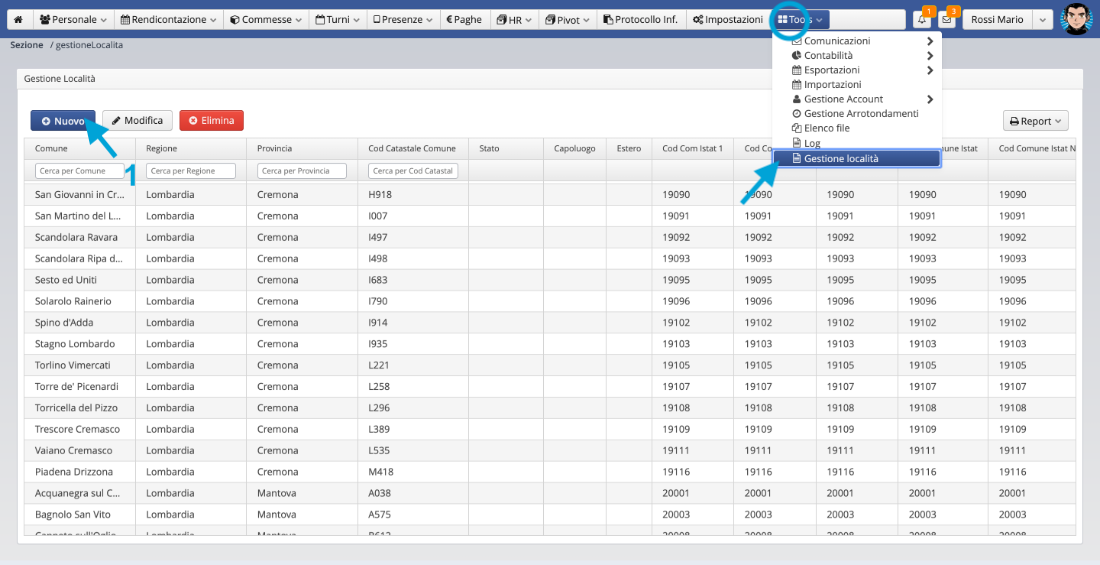 Dal menù Tools > Gestione località