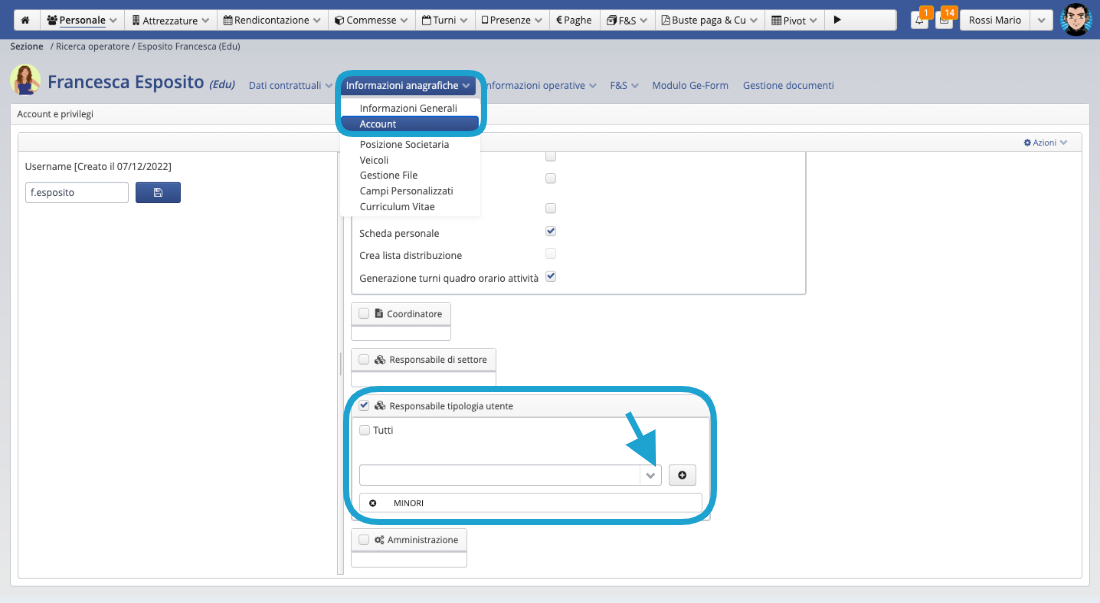 Responsabile tipologia utente: